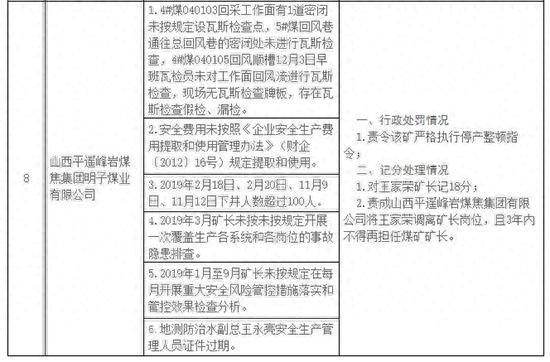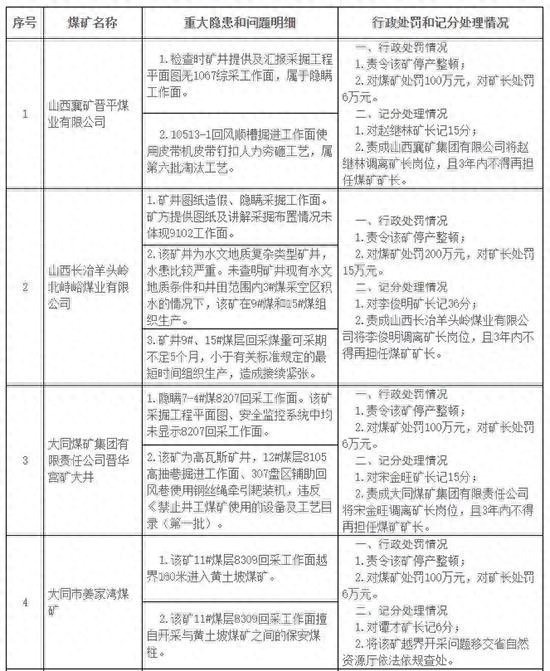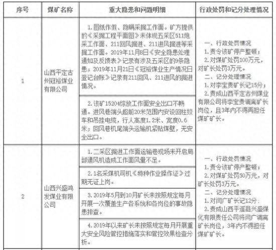 日前,山西省应急管理厅网站公布了煤矿安全生产违法违规行为查处情况,责令停产整顿煤矿共计16处,均存在各类重大隐患及问题,根据查处情况予以不同程度的行政处罚和记分处理。