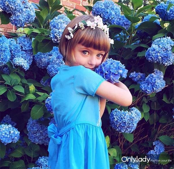 这位小萝莉名叫Olive Elise Abercrombie,金色的蘑菇头、蓝色的大眼睛都已成为Olive的标志。