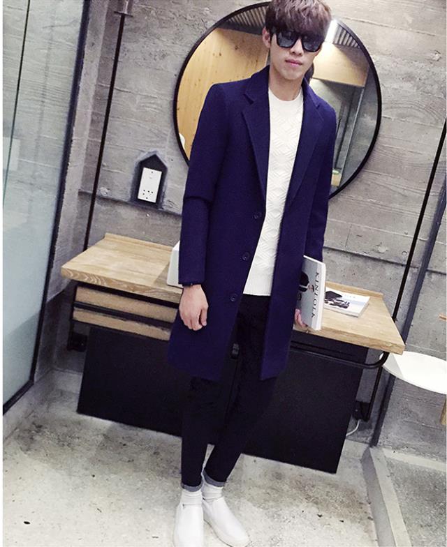 翻领斜扣韩版长款呢大衣,内搭羊毛衫,下面搭配休闲哈伦裤,马丁靴,整体很显瘦哦,帅气又时尚。