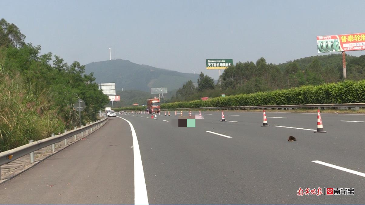 10月28日上午11时18分,广西高速交警七大队执勤民警接警后,迅速赶赴现场。在事故现场,看到一名被撞的老人正躺在路中间,经现场医护人员检查,该老人当场死亡。而事故车辆即一辆货车停在路边。