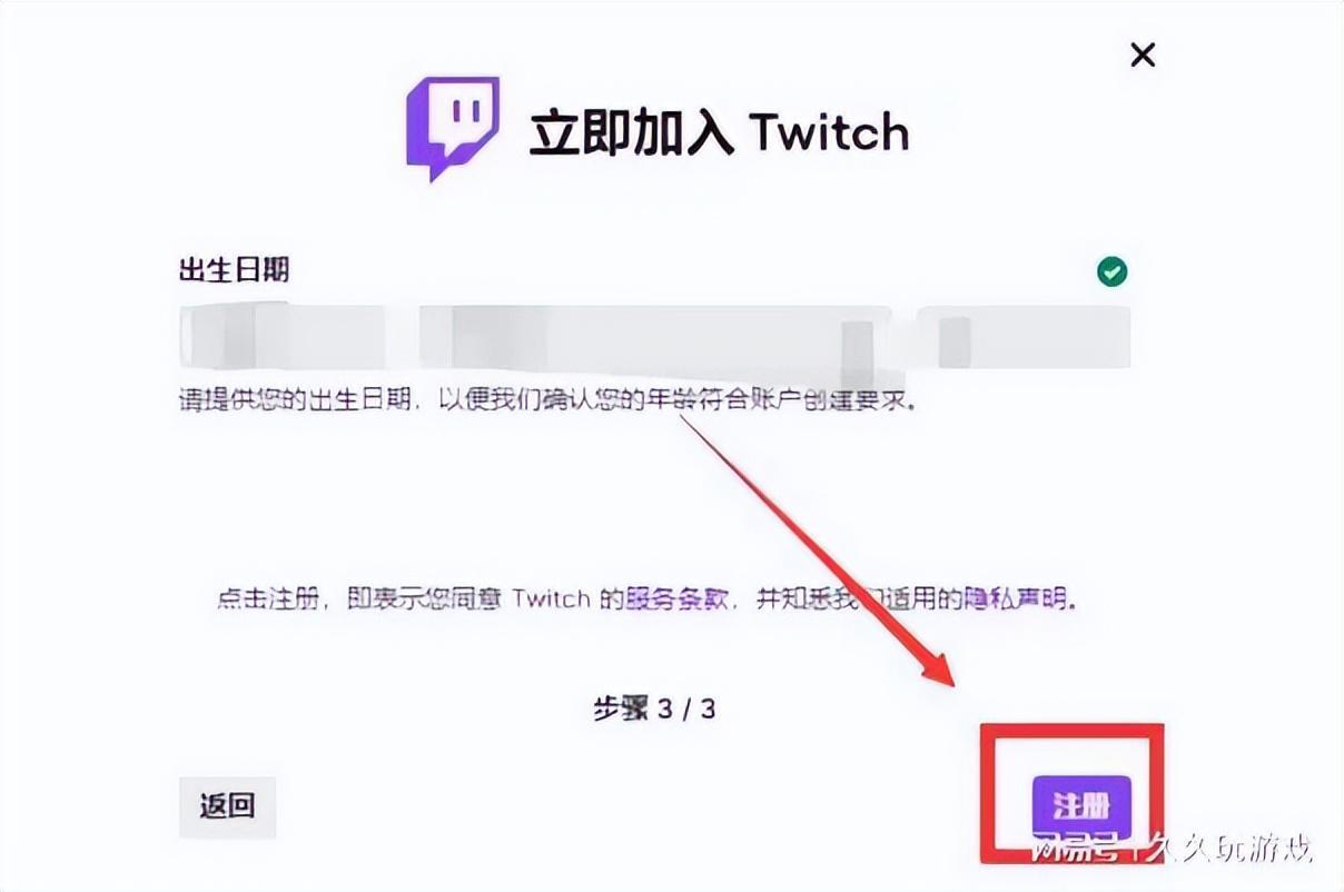 继续填写您的出生年月日信息,然后点击注册按钮,以完成账号注册过程。