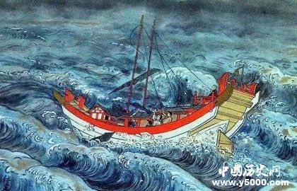 仲麻吕仰视海天,惜别中国,向往故乡,遂咏成和歌一首,并译为汉语示与众人,众皆叹赏:翘首望长天,神驰奈良边;三笠山顶上,想又皎月圆。但是,命运却偏偏和归心似箭的仲麻吕为难。他们在归国途中遇到了风暴,藤原清河大使和仲麻吕所乘的第一船触礁,不能继续航行,与其他三船失掉联系,被风暴吹到越南的驩州海岸。
