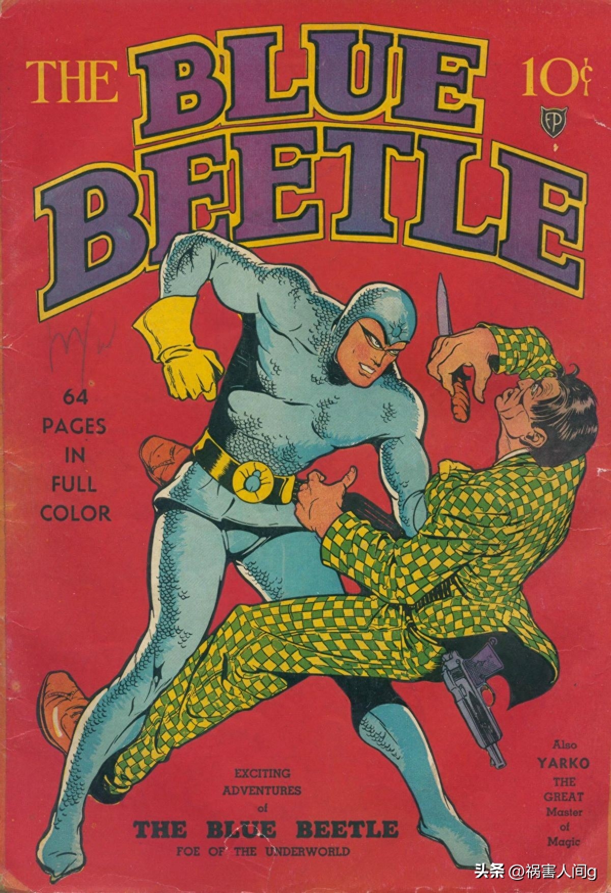 在1939年的漫画《神秘人漫画(Mystery Men Comics)》#1中,艺术家查尔斯尼古拉斯创造了超级英雄蓝甲虫。