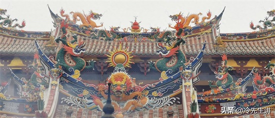 修复后的殿宇,装饰精美的木雕、石雕和泥塑,屋脊剪瓷龙雕,造型各异,其间配有花鸟走兽,体现闽南古建筑的艺术风格。