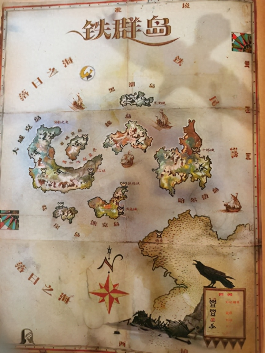 铁群岛是位于维斯特洛大陆西方的岛群,其中的七个主岛分别是派克岛、大威克岛、老威克岛、哈尔洛岛、盐崖岛、黑潮岛和橡岛。这七大主岛中间分布着其他二十来个小岛,此外,在距离大威克岛西北八日航程的海域上,还有一片以孤灯堡为主的岛群——这是已知世界的最西方。