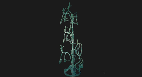 青铜神树刚被挖掘出来的时候完全看不出这是树的形状,因为被摧毁得很严重,经过专家10年多的修复,一号神树被还原了,目前它是所有青铜器中体积最庞大的一件。