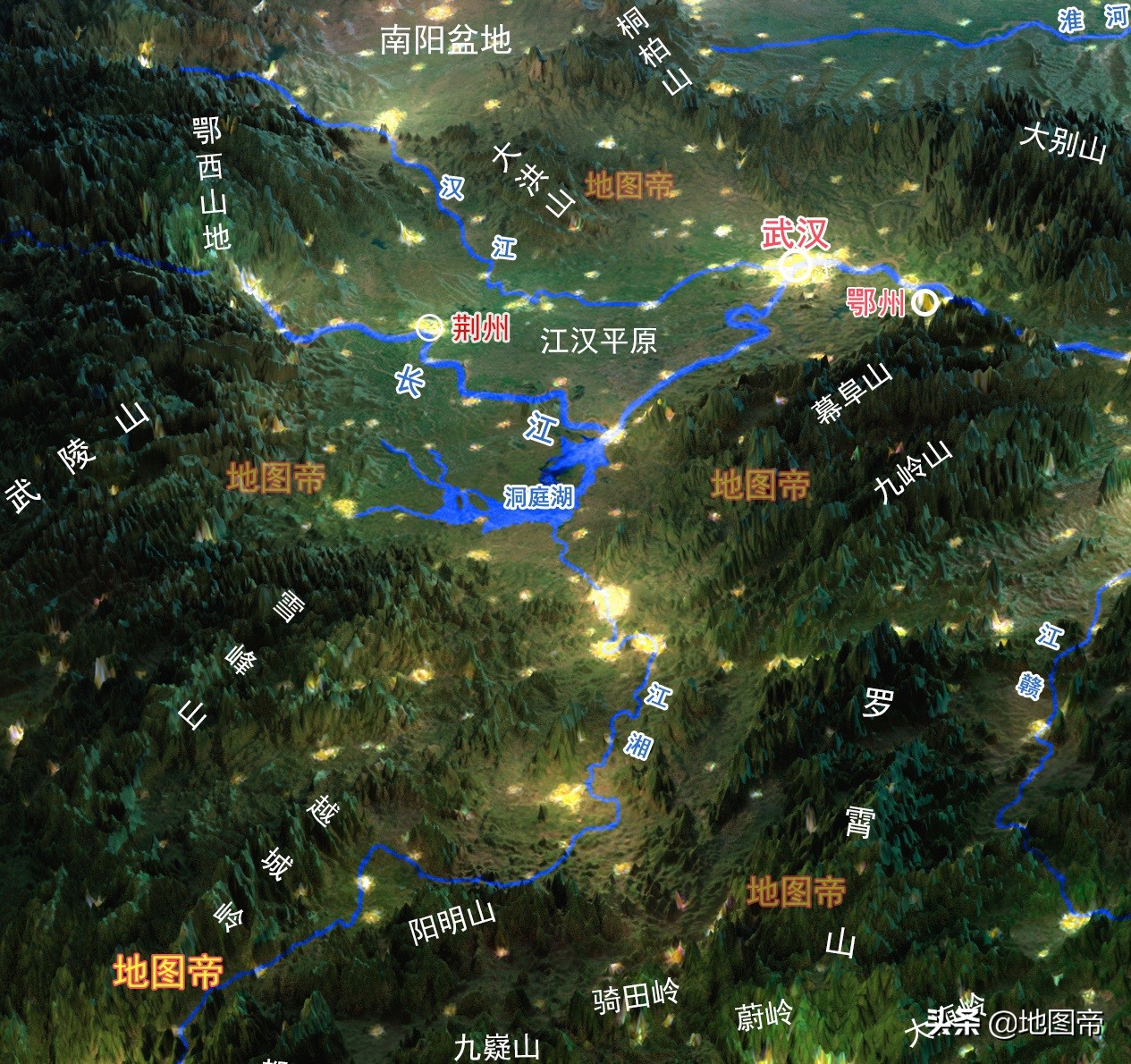 湖北周围到处都是山,俗话说山水相依,湖北自然缺不了水。长江从重庆出三峡后,横穿湖北省南部。汉水是长江最大的支流,在武汉汇入长江。