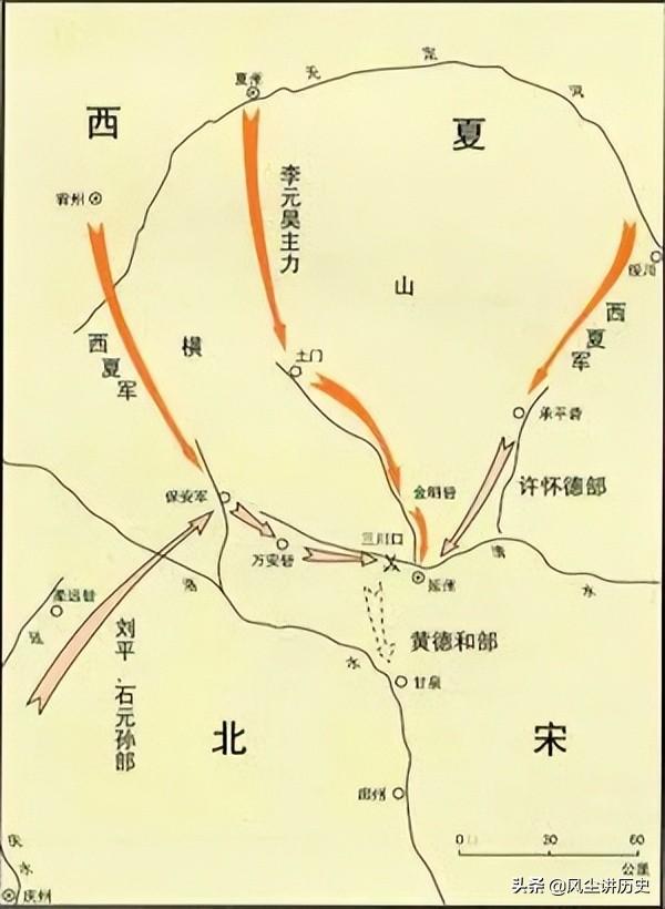 宝元二年李元昊写信通知宋朝承认西夏政权。北宋朝堂上大部分官员都主张讨伐西夏,宋仁宗也是当机立断地下诏削去李元昊的官爵,并兴兵讨伐,长达三年之久的第一次宋夏战争由此爆发。