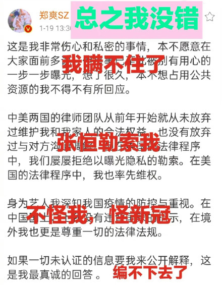 郑爽还将张恒告上了法庭,让张恒还自己那2000万元。
