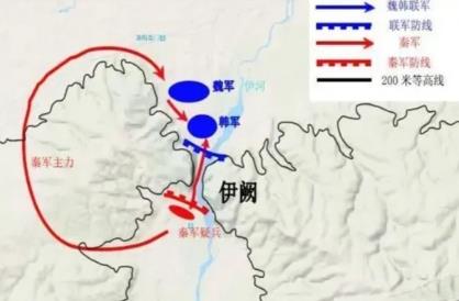 公元前293年,秦人针对河洛盆地(洛阳)发起了进攻,试图掌握河洛去往南阳的通道,韩魏联军阻击。而白起指挥了一场局部战争上的迂回,抄到了韩魏的后路上,并将两国联军沿伊水往远离本土的南方挤压。在伊水河谷深处,有一处叫做伊阙的山谷,这里两山并立,中间伊水穿山而过,而庞大的韩魏联军在狭小的山谷中被挤压得无法施展,被尽数歼灭,这一战秦人斩首二十四万,开启了秦人轰轰烈烈的消灭六国有生力量之路。