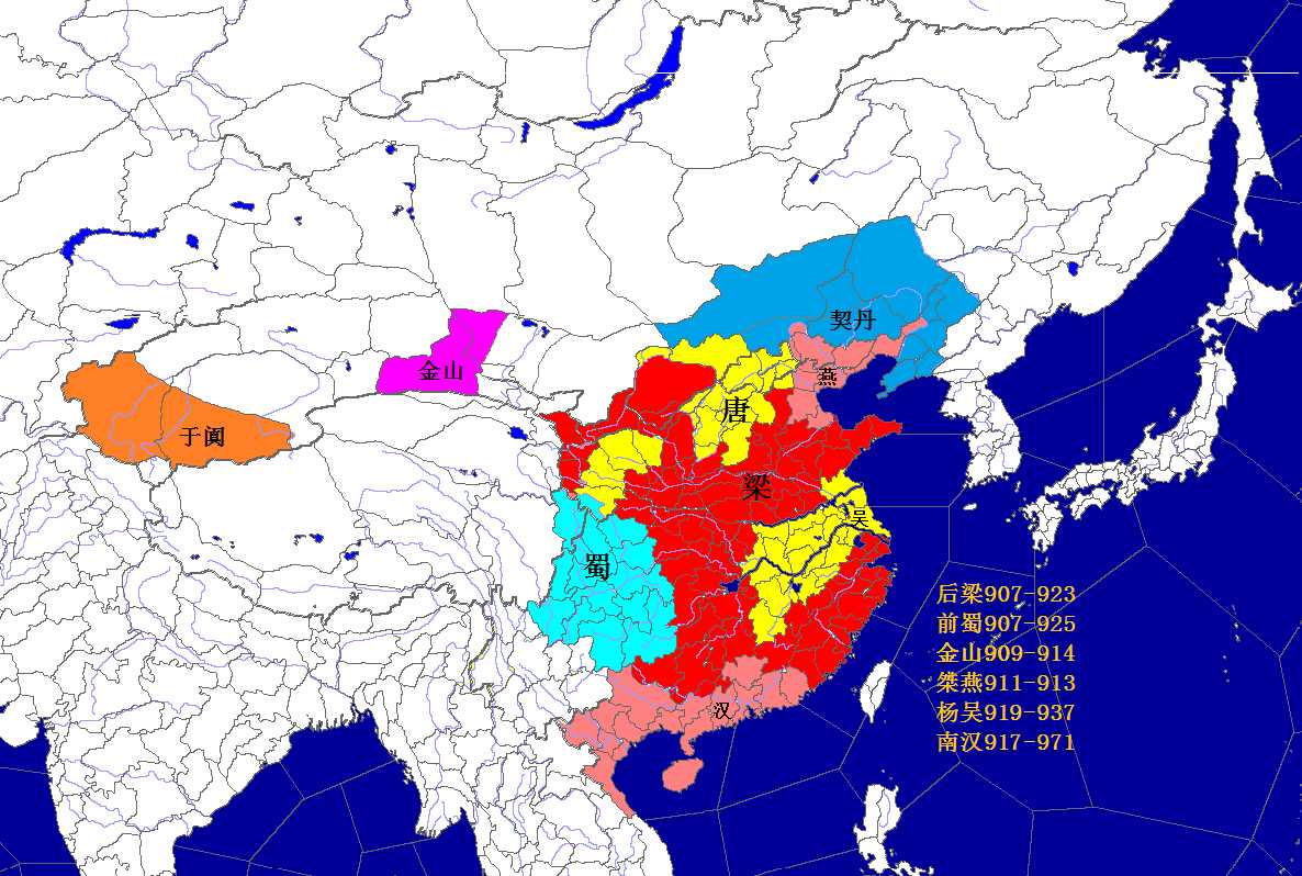 如果有人问你,谁接替了唐朝统治中原,那么你千万别说是宋朝,因为还轮不到它,五代就是接替唐朝统治中原的五个朝代。在五代跟前,十国都是小弟,都得靠边站。