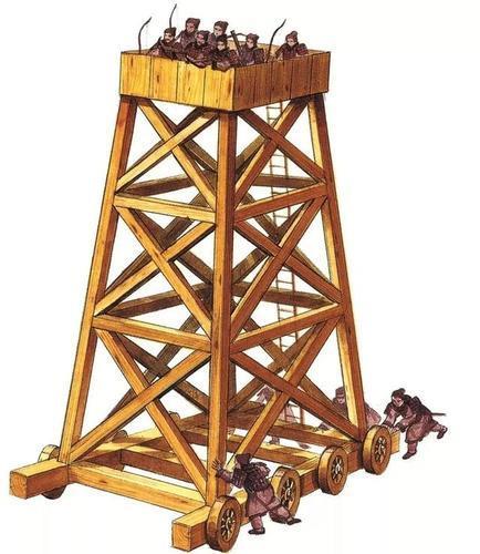 所谓井阑,就是用木材制造成井栏形状,士兵爬上去,居高临下射击敌军。