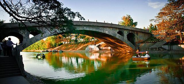 元代刘百熙在诗里这么写道:"水从碧玉环中去,人在苍龙背上行。"这两句诗写的是赵州桥,原名安济桥。水从碧玉环一样的桥洞流过去,人走在桥上,就如同走在飞龙一般腾空的桥身上。