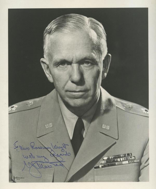 马歇尔将军正是毛主席在《别了,司徒雷登》提到的那个马歇尔,他参加过一战,39年即成陆军参谋长,是富兰克林·罗斯福最重要的谋士,拟定了美国全盘的二战策略,后又先后担任国务卿和防长,拟定了复兴并渗透欧洲的《马歇尔计划》,奠定了美国战后的霸权地位。