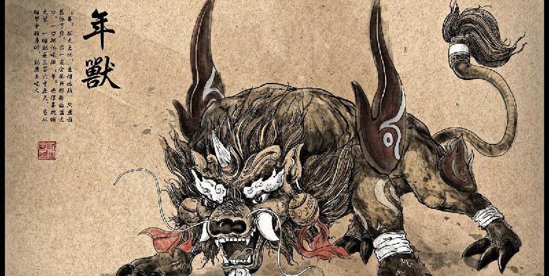 “年兽”喜欢长年深居海底,每到腊月的最后一天会爬上岸,吞噬牲畜伤害人命。