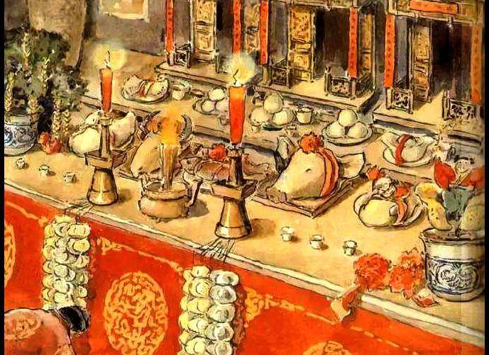 除了要全家老小围在一起用餐表示和睦团圆外,还须在吃饭前先供祭祖先;