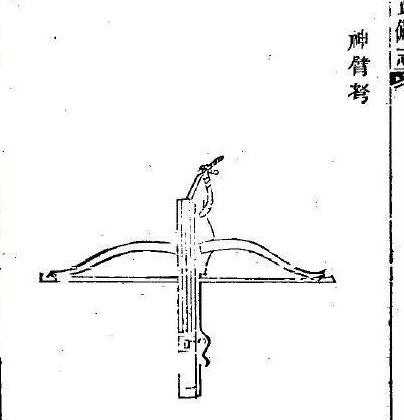 其二,神臂弓。神臂弓是在宋神宗时,由百姓李宏研制的精良兵器,实际上也是一种弩。据《宋会要辑稿》兵二十六之二十八记载,神臂弓是以坚韧的山桑作弓身,以结实檀木为硝,以铁为橙子枪头,以铜为马面牙发,以麻绳扎丝为弦。弓之身三尺有二寸,弦长二尺有五寸。单兵可以操射,发射数寸长的木羽箭,射程远及二百四十多步,“仍透穿榆木,没半苛”,足见其劲利。由于它具有射程远、侵彻力大、比较轻以及机动性好,即只用一人发射等优点,故容易推广,颇有实用价值。