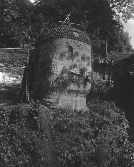首先我们要知道,在大佛棱、腿臂胸口和脚背等处曾发现过残存的柱础和桩洞,这证明了在大佛的头顶上曾建有木阁,对大佛进行覆盖和保护。