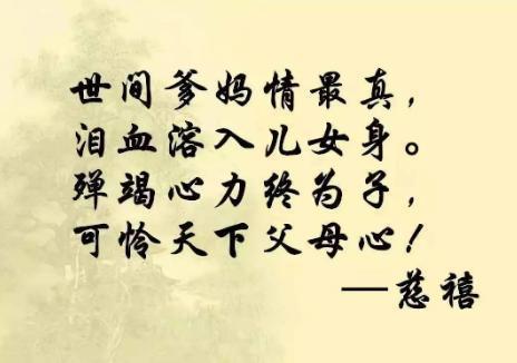 “世间爹妈情最真,泪血溶入儿女身。殚竭心力终为子,可怜天下父母心!”