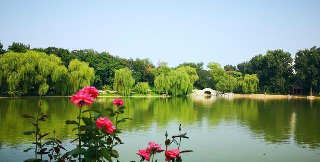 荷塘中莲叶接天,荷花映日。远处石桥卧波,绿柳轻垂。此情此景,远胜当年,可谓集园林艺术之大成,融美景人文于一体。