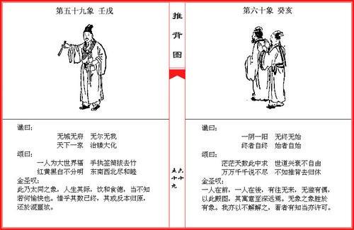 《推背图》共有六十象,每象以干支为序号,主要包涵:图像、卦象、谶语和“颂曰”诗等四个部分。《推背图》预测从唐木运开始、至明火运世程近两千年,一直到共和的世界大同。“帝制时代、共和时代、大同时代”等。直到现在后人也不知道李淳风和袁天罡究竟是用什么理论推算的。