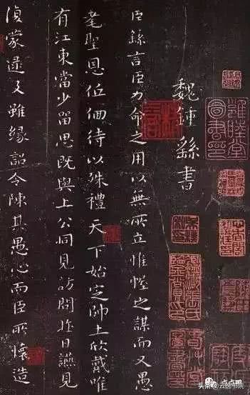 其中《宣示表》是王羲之临摹钟繇的作品。由于王羲之书法水平极高,他临摹的钟繇的书法作品应该很接近真迹。通过王羲之的《宣示表》我们可以对钟繇的书法有所了解。