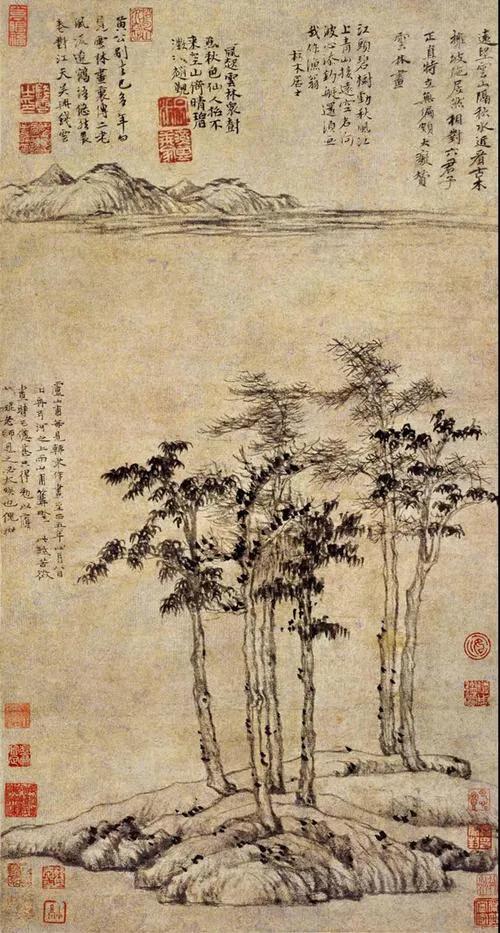 倪瓒,元末明初画家、诗人。倪瓒擅画山水、墨竹,师法董源,受赵孟頫影响,早年画风清润,晚年变法,平淡天真,与黄公望、王蒙、吴镇合称"元四家"。