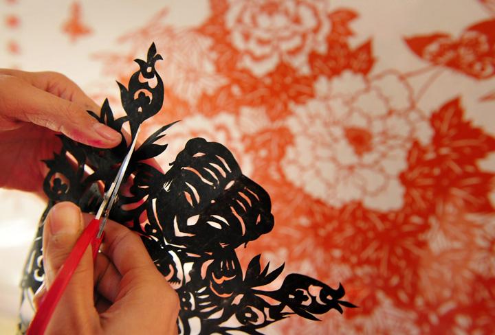 民间借鉴剪纸形式,用动物皮制成皮影戏的人物造型;而宋代出现的刮浆印花,其花版纹样就是采用剪纸技法,有阴阳刻之分,长线要割断,以点分虛实。
