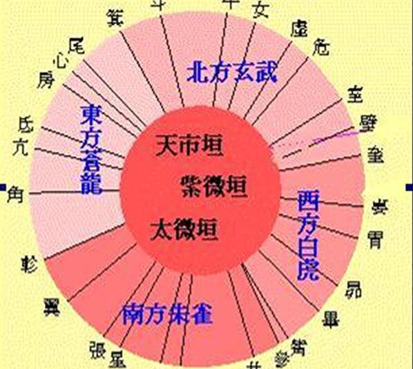 而紫微垣位于三垣的中央,位置永恒不变,非常突出,加上两侧太微垣和天市垣的陪衬,愈加显得耀眼夺目,因此有“紫微正中”的说法。