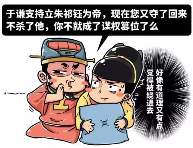 而接着朱祁镇就犯了他生命中最大的错误,在徐有贞的蛊惑下,为了让重登帝位师出有名,下令杀害了民族英雄于谦,从此背上了杀害忠良的千古骂名,也是他一生中最大的污点。