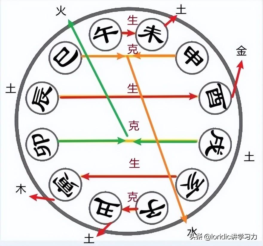 古人发现,6组地支分别组合在一起的时候,会比原来的五行力量更强,这6组地支分别指子丑合化土,寅亥合化木,卯戌合化火,辰酉合化金,巳申合化水,午未合化土。这6种组合就叫地支六合。其中红色横箭头的3个为生合,3个为克合。