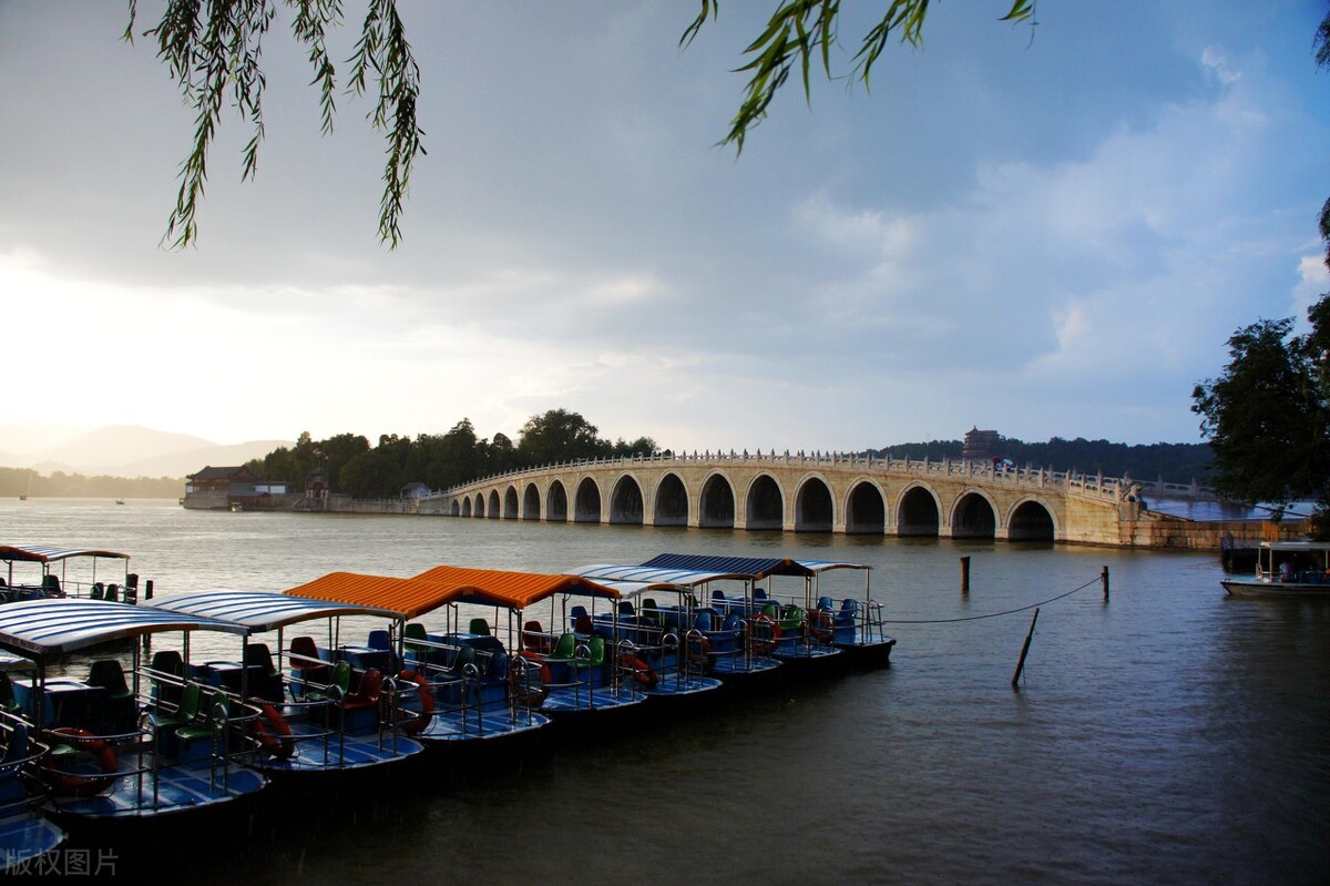 万顷碧波的昆明湖,占据了颐和园3/4的面积。湖中所造的大小岛屿和众多建筑:界湖桥、豳风桥、玉带桥、境桥、练桥、柳桥、十七孔桥;南湖岛、廊如亭、文昌阁、知春亭、铜牛等,将园林点缀得如同瑶池仙境。