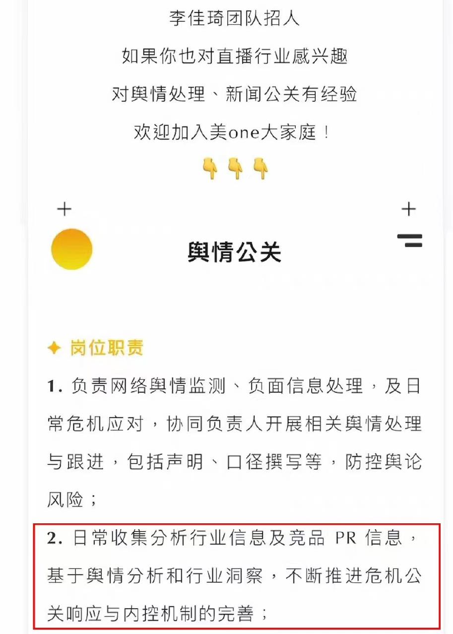 李佳琦团队招聘舆情公关上热搜,公司回应