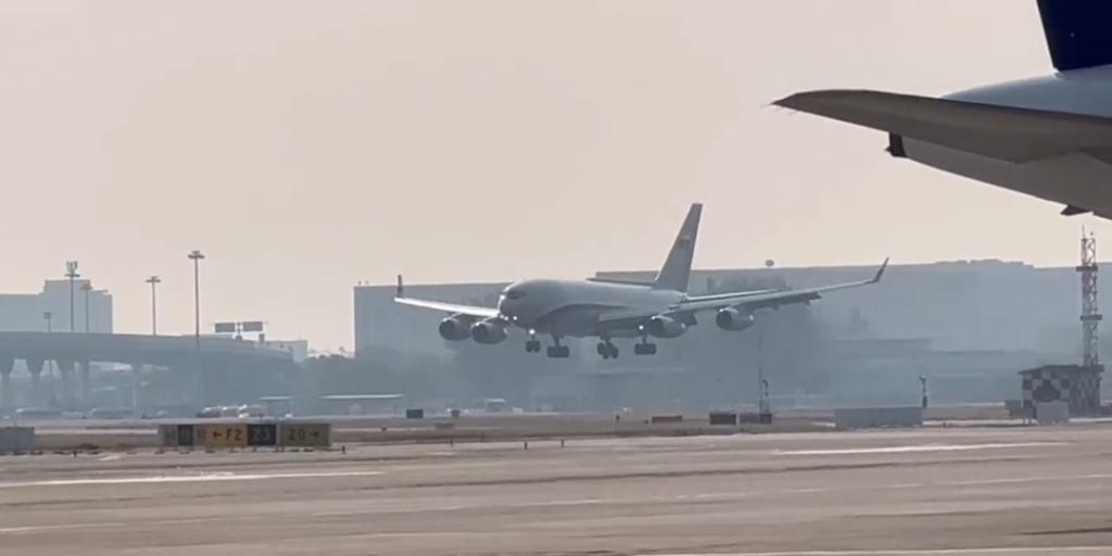 普京乘坐的飞机抵达北京首都国际机场。环球时报 - 环球网 记者 何卓谦 摄