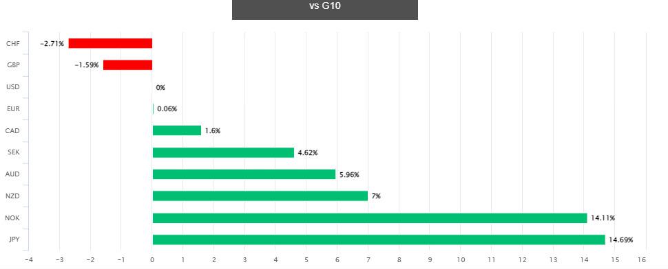 ( 年内 G10 货币强弱对比:瑞郎领涨,日元领跌 )