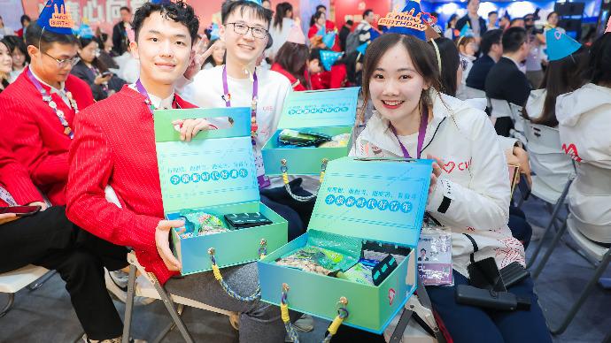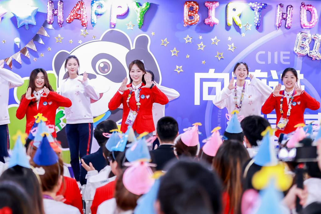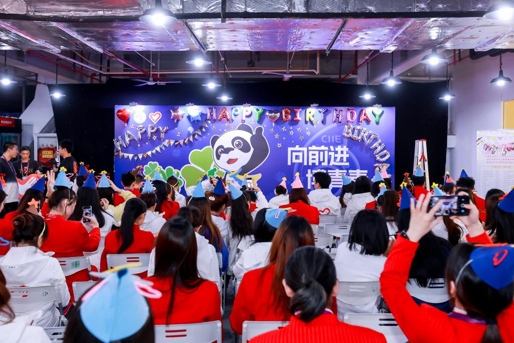 11 月 7 日下午,107 名进博会 " 小叶子 " 在志愿者之家利用工作之余进行庆生,寿星们共同度过了一个难忘的生日,留下进博青春记忆。