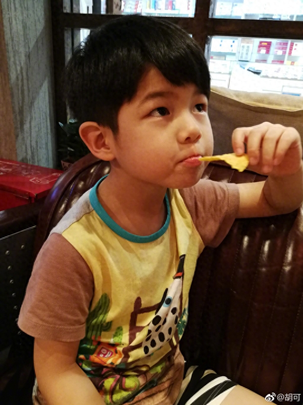 照片中,安吉似乎胖了一点,即使是中分也是超级帅气外加几分可爱,对着镜头做起了鬼脸,古灵精怪的样子让人忍不住想要捏一捏安吉的小脸。照片公开之后,网友们纷纷留言表示:“我的天这么像宋仲基,太帅了吧安吉”、“这三七分也是贼帅的,为安吉点赞”、“安吉的嘴巴总有吃过零食的痕迹”等等。安吉大名沙俊伯是沙溢和胡可的大儿子,出生于2011年7月16日,长相可爱帅气,与韩国艺人宋仲基十分相似,拥有着众多的粉丝,和一大片迷妹,人气似乎已经超越老爸沙溢了!