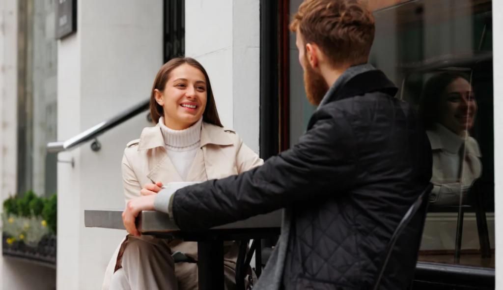 英国的年轻情侣约会聊天。