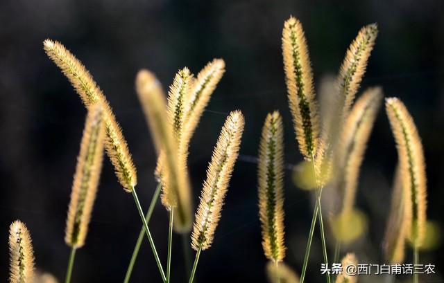 【谷子】:我们平时所说的五谷“稷、麦、稻、黍、菽”中的“黍”和“稷“就是“谷子”,谷子是中华民族最早选择栽培的农作物,黍和粟就是谷子的祖先,和现在的“狗尾巴草“是一类。