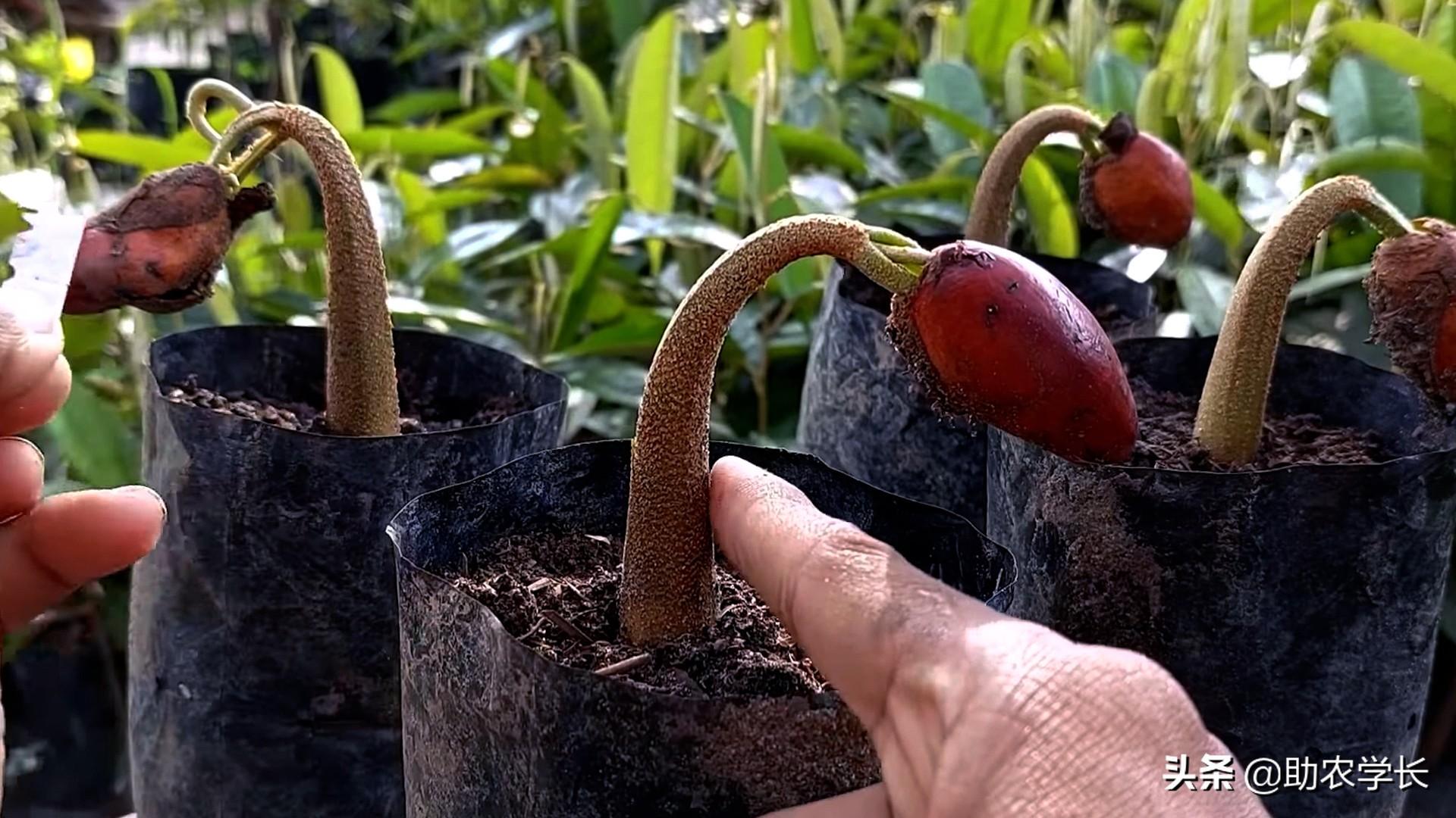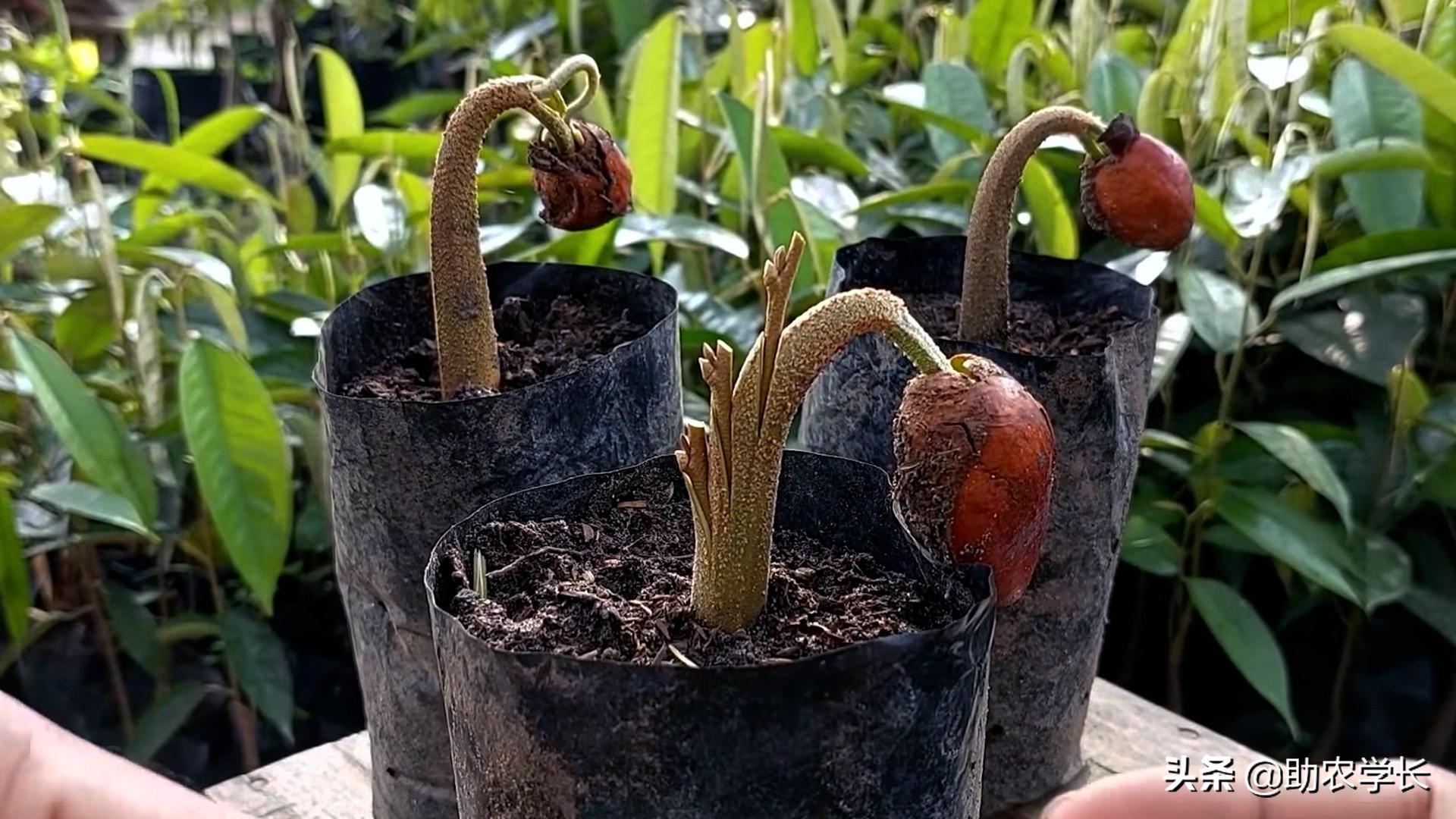 在东南亚这边,榴莲的种植方式有两种,一种是种子培育,另外一种就是嫁接育苗,现在的果农们为了提高时效性,都会选择嫁接的方式,不仅可以让果树更早结果,结出来的果实口感也会好吃一些。
