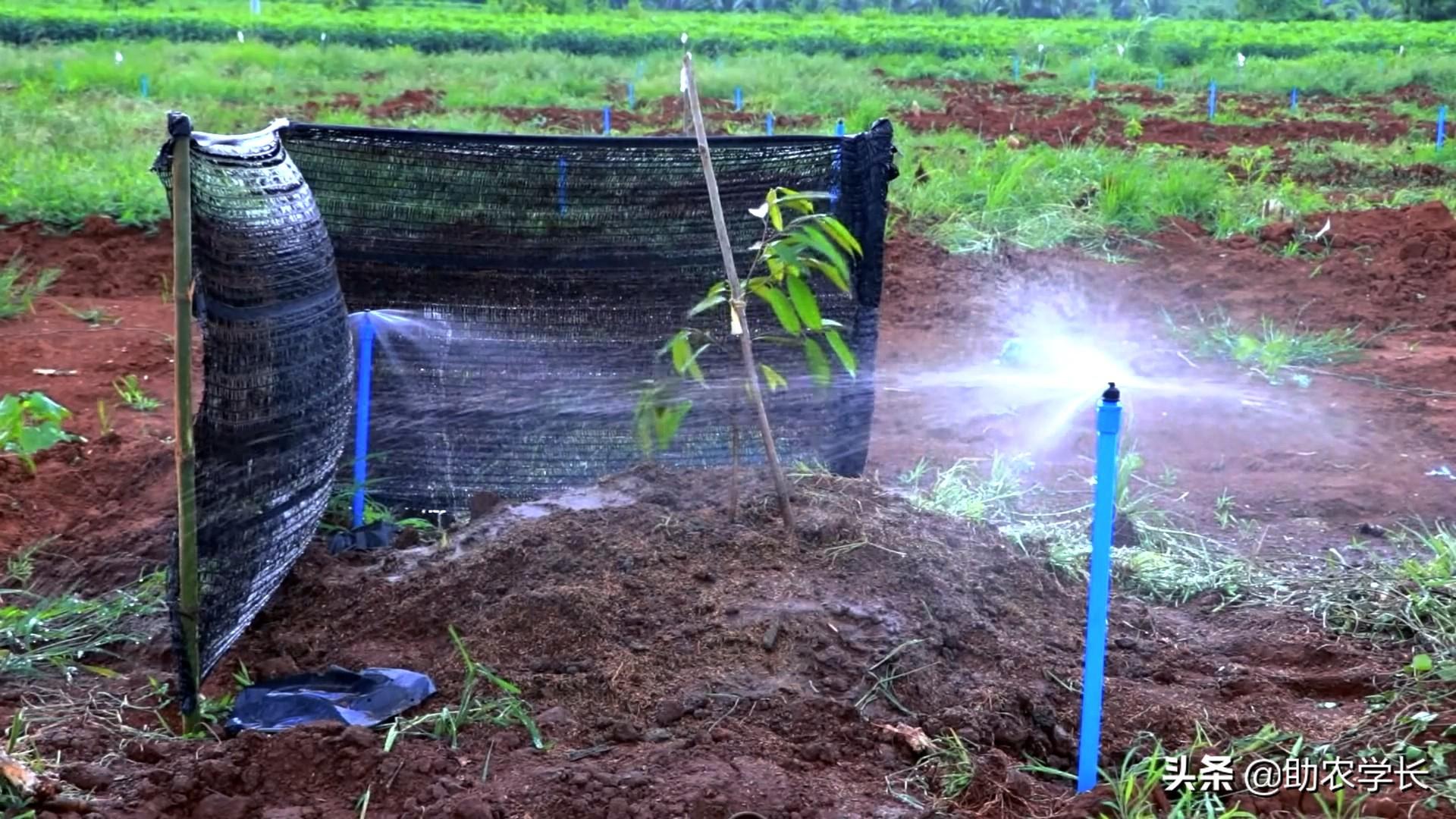 在种植榴莲苗之前,工人会用挖掘机把地块都修整好,还会装上全自动的灌溉系统,榴莲对环境比较苛刻,是一种喜光照充足和湿润环境的果树,热度需求量比较大,年均温度必须25以上,才能结出品质好的果。