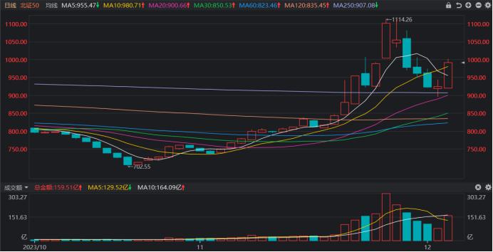 作为近期市场高人气方向之一,北交所股此前在 11 月下旬上演火爆行情,不过进入 11 月末 12 月初后,指数和个股均有回调。其中,北证 50 指数于 11 月 28 日至 12 月 1 日期间 4 日连跌,累计调整近 16.3%,成交额数据也由此前的 200 余亿元降至 100 亿元以下。不过,随着北交所近日人气再聚,其交投也再度火爆,不少北证人气牛股连日上涨,录得亮眼行情。