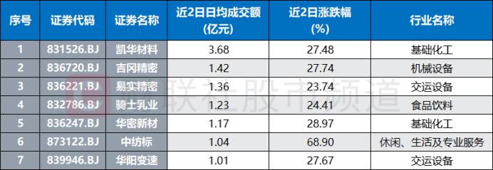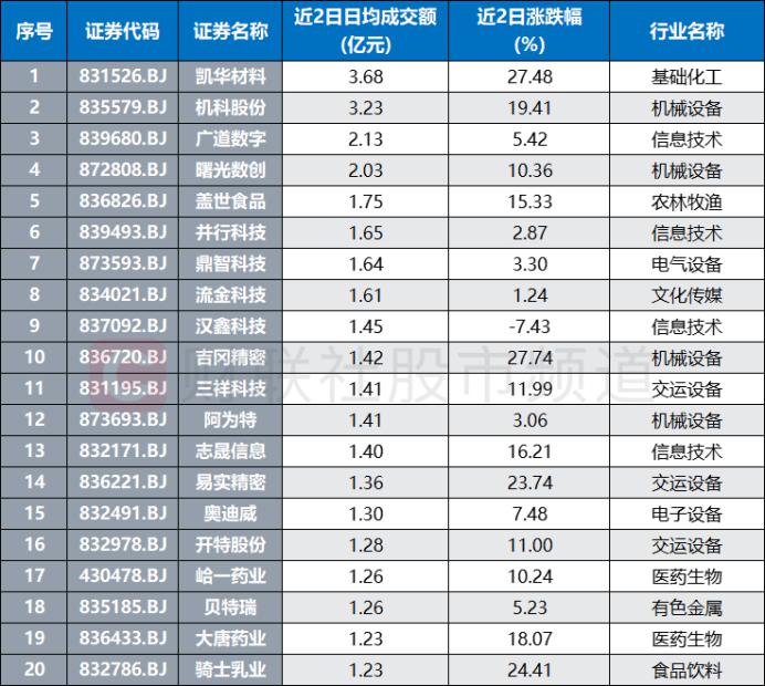 注:近 2 日(12 月 4 日至 5 日)日均成交额超 1 亿元的北交所股