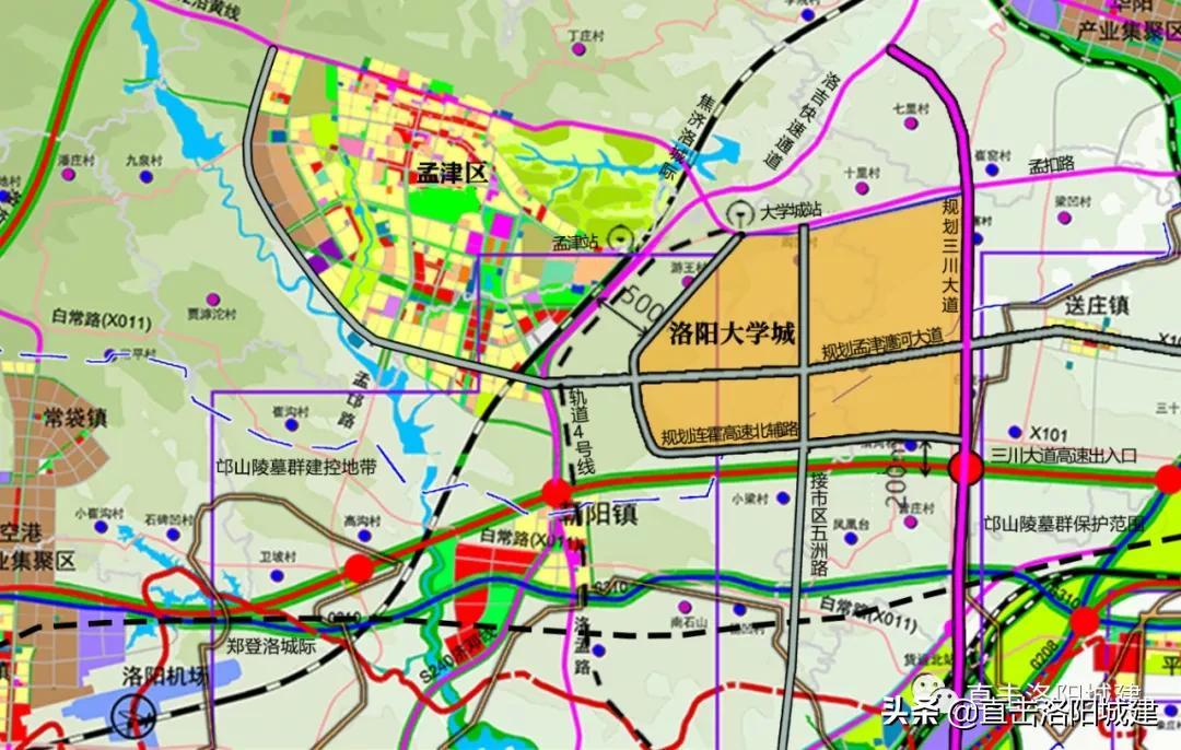 洛阳大学城,位于洛阳市孟津区洛吉快速路与连霍高速交叉口东北角,规划占地33450亩。计划入驻10所左右高校,在校生达到15万人。