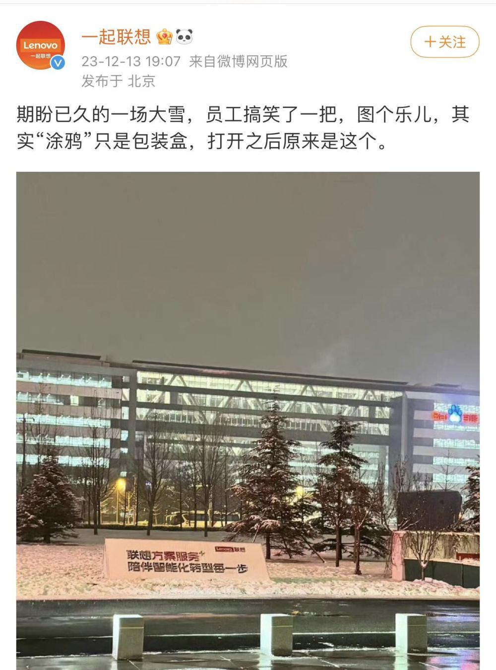 期盼已久的一场大雪,员工搞笑了一把,图个乐儿,其实 " 涂鸦 " 只是包装盒,打开之后原来是这个。