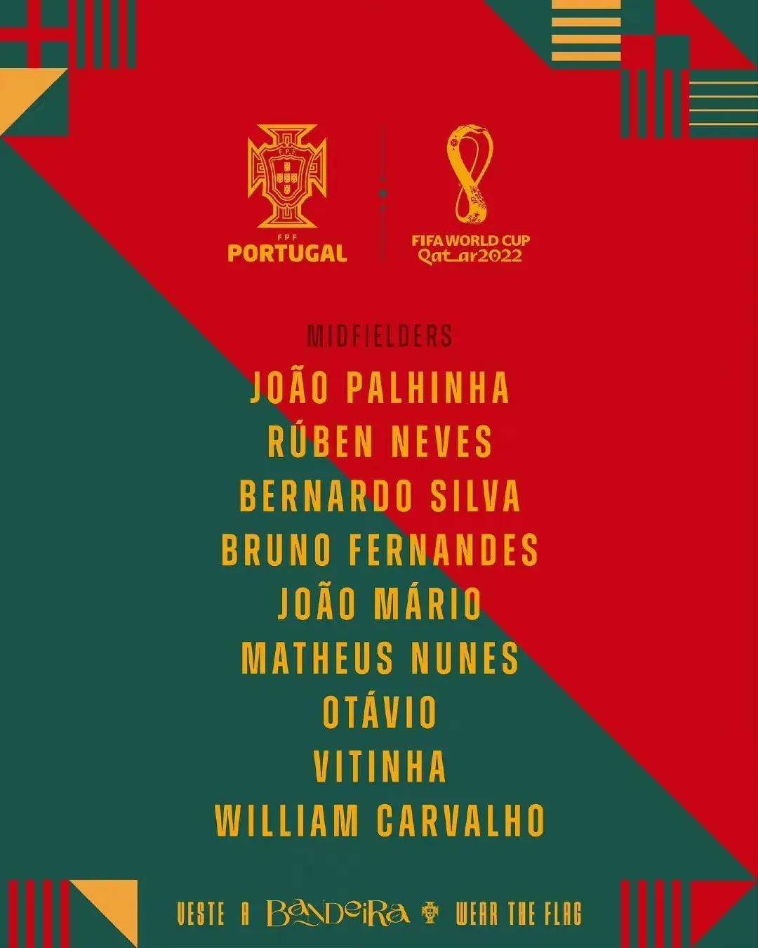 中场:B席,B费,威廉卡瓦略,鲁本内维斯,维蒂尼亚,帕利尼亚,奥塔维奥,努内斯,若昂马里奥。