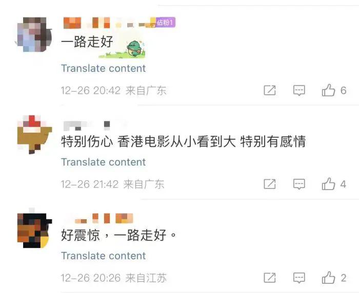 香港知名演员任达华当日接受访问时表示,至今仍然记得和黎淑贤合作电影《古惑仔》,她为人开朗。人生无常,希望她一路走好。大家要珍惜眼前人,遇事不要钻牛角尖,没有什么是过不去的。