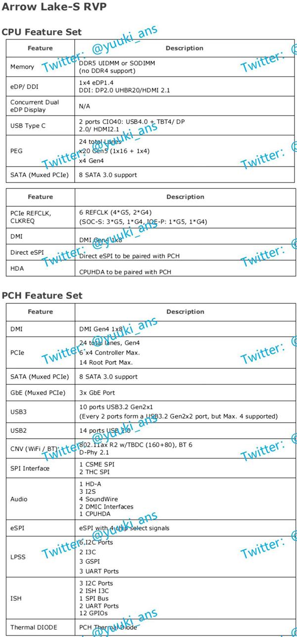 英特尔Arrow Lake-S台式机CPU规格曝光:24核32线程、原生支持雷电4
