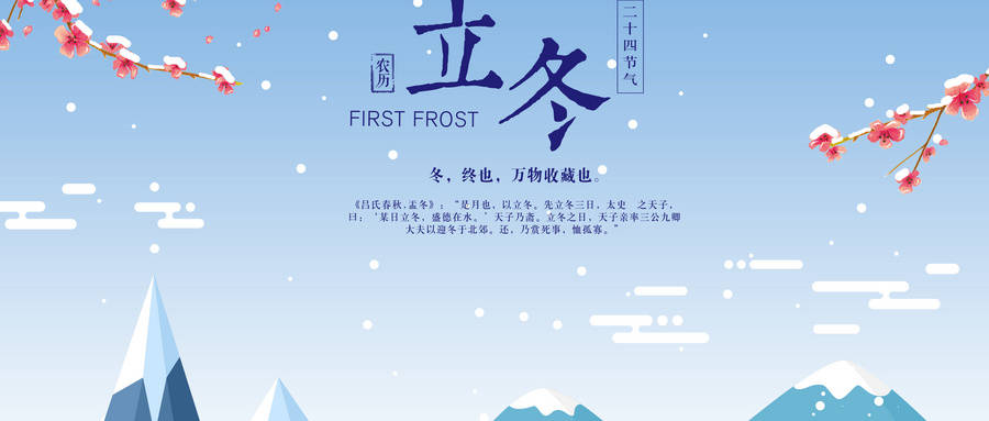 立冬是中国传统的二十四节气之一。“立”建始也,“冬”终也,万物收藏也。这说的就是冬天季节,阳退阴生,生气闭蓄,万物开始收藏。