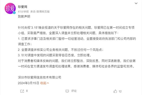 315曝光把客户当猎物收割!珍爱网发布致歉声明:立即整改
